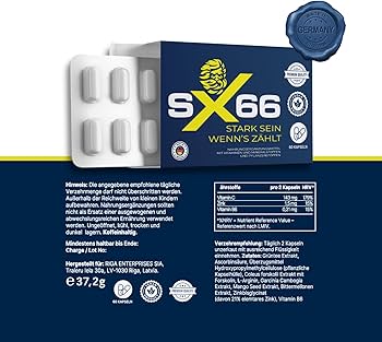 SX66 ist ein Nahrungsergänzungsmittel, das entwickelt wurde, um Energie, Ausdauer und allgemeines Wohlbefinden zu unterstützen. Die SX66 Capsules enthalten eine Kombination aus Inhaltsstoffen, die dazu beitragen können, die körperliche Leistungsfähigkeit zu verbessern und den Körper bei täglichen Aktivitäten zu unterstützen.